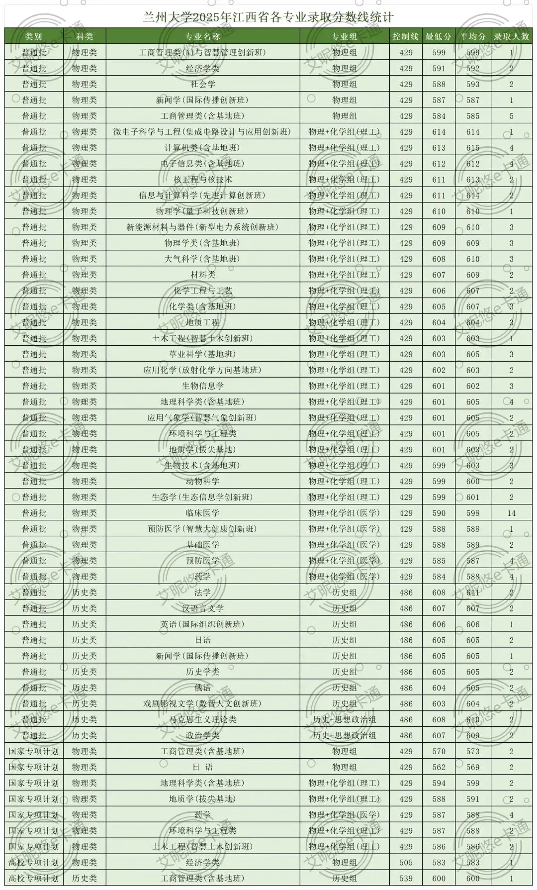 >兰州大学2025年江西省各专业录取分数线!