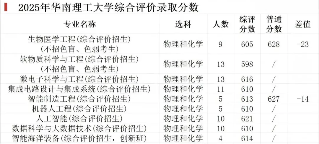 华南理工大学作为综评中为数不多的985院校,目前这几年综评申请热度非常稳定,其所抛出的专业强度较高。本次依然是未能在普通类中找到很多的参考分数,但其招生最低分为627分,且专业比较贴近土木方向。换句话来说,以上专业中除了智能制造工程外应该不会再有更差的专业,所以其综合降分可以达到至少15分以上的水平!南方科技大学的录取分数处于较为理想的水平,其中唯一在普通类批次招生的专业——人工智能专业,录取分数为647分。相较而言,通过综合评价招生,该专业大概有10分左右的降分优惠。需要注意的是,生物医学工程和生物医学科学这两个专业为中外合作办学专业,学费每年高达13.5万元。中石油本次均值降分为9分,并且其开设专业类型是所有的综合评价院校里面最全的院校。全部专业都能在普通类中找到对应的分数。其国家特色专业:资源勘查、石油工程、应用化学、油气、过程装备与控制工程等省一流专业:材料、计算机科学与技术、电气等多达十几个学校王牌专业均在综评内招生。其中降分最大的专业为测绘工程,降分18分。其中地球物理学、资源勘查工程、安全工程降分均超过15分。海洋油气、石油工程、应用化学表现也非常不错都有10分以上的降分水平。其中管理科学与工程类并未降分。这里大家要区分清楚中国科学院大学和中国科学技术大学的区别。前者简称国科大、后者则是中科大。在第四轮学科评估中,中科大有 7 个 A + 学科,包括物理学、化学、地球物理学等,在量子通信等技术创新领域表现卓越。国科大拥有 18 个 A + 学科。因为在历史发展中,中国科学院大学主要以培养研究生为主,自2014年才开始招收少量本科生。所以其虽然不是985、也不是211院校。但依然无法撼动其科研第一所的地位,可以明显看到其综评的录取中出现了罕见的分数倒挂情况。但分数基本与普通类持平。其中化学、数学、材料、人工智能、计算机均出现了1~3分分数倒挂,即综评分数高于普通分数。今年山东科技大学在综合评价招生中的降分情况整体趋于平稳,与去年相比波动减小。去年录取分数较低的日语专业,今年分数有显著回升。在此次降分中,表现最为突出的是应用化学专业,降分幅度高达42分,如此大的降分幅度下,无论复试成绩如何,考生几乎不会出现分数倒挂而被录取的情况。