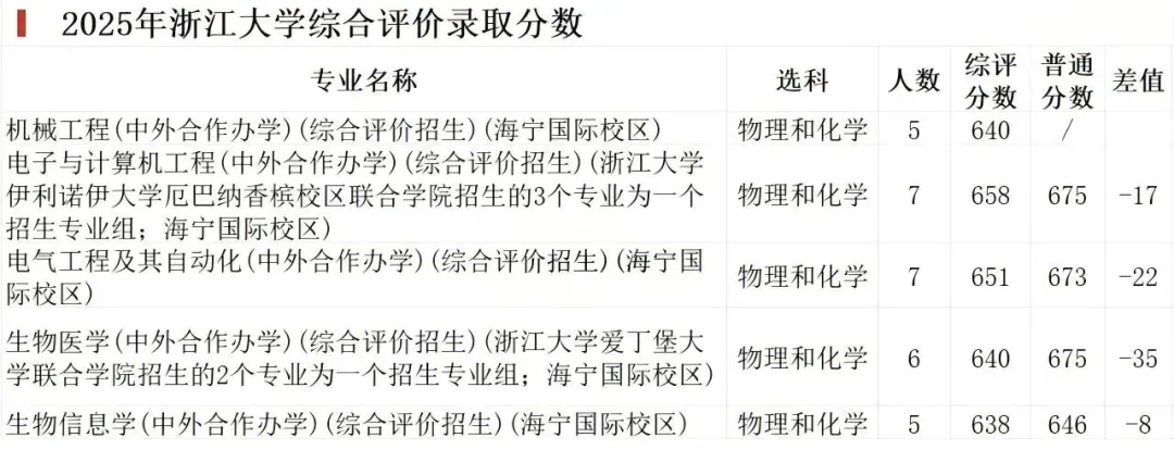 中国海洋大学按其实力与地位,报考热度本不应如此低迷。关键原因在于其招生专业设置较为单一,仅涵盖两个小语种专业以及化学、水产专业。不可否认,化学和水产均为该校的王牌专业,其中化学专业设有海洋化学这一特色培养方向,感兴趣的同学可自行深入了解。由于小语种专业不在普通类批次招生,特此找了两个相关参考数据。整体来看,综合评价招生可降分约20分。在此,强烈建议对化学感兴趣的同学查看海洋化学方向的详细资料。浙江大学作为顶尖的985高校,在综合评价招生中能为考生提供20分的降分优惠。不过,大家务必留意括号内的关键信息,其招收的专业均为中外合作办学专业。这5个专业每年的学费统一为16万元。另外要特别提醒,表格里所采用的参考分数是普通类专业的分数,这一点大家一定要格外留意!深圳北理莫斯科大学作为综合评价中外合作院校中常被视作保底选择的院校,其录取分数表现稳定,分数大致维持在525分至550分之间。该校初审条件相对宽松,因而成为众多考生的首选报考院校。目前,该校在普通类批次中招收的4个专业,录取分数均超过550分。据预估,通过综合评价招生途径,考生可获得约10分至20分的降分优惠。根据2025年最新公布的招生计划,该校学费标准为每年70000元。上海科技大学的情况较为特别,它虽采用综合评价的招生模式,但在志愿填报环节,需在提前批A的其他类中进行填报。尽管上海科技大学与上海纽约大学同属综合评价类院校,但二者存在显著差异。上海科技大学是公办院校,学费按照正常标准收取,每学年6000元;而上海纽约大学属于中外合作办学性质,四年学费总计高达100万元左右。学费差异这一因素,在一定程度上致使上海科技大学的录取分数相对较高。
