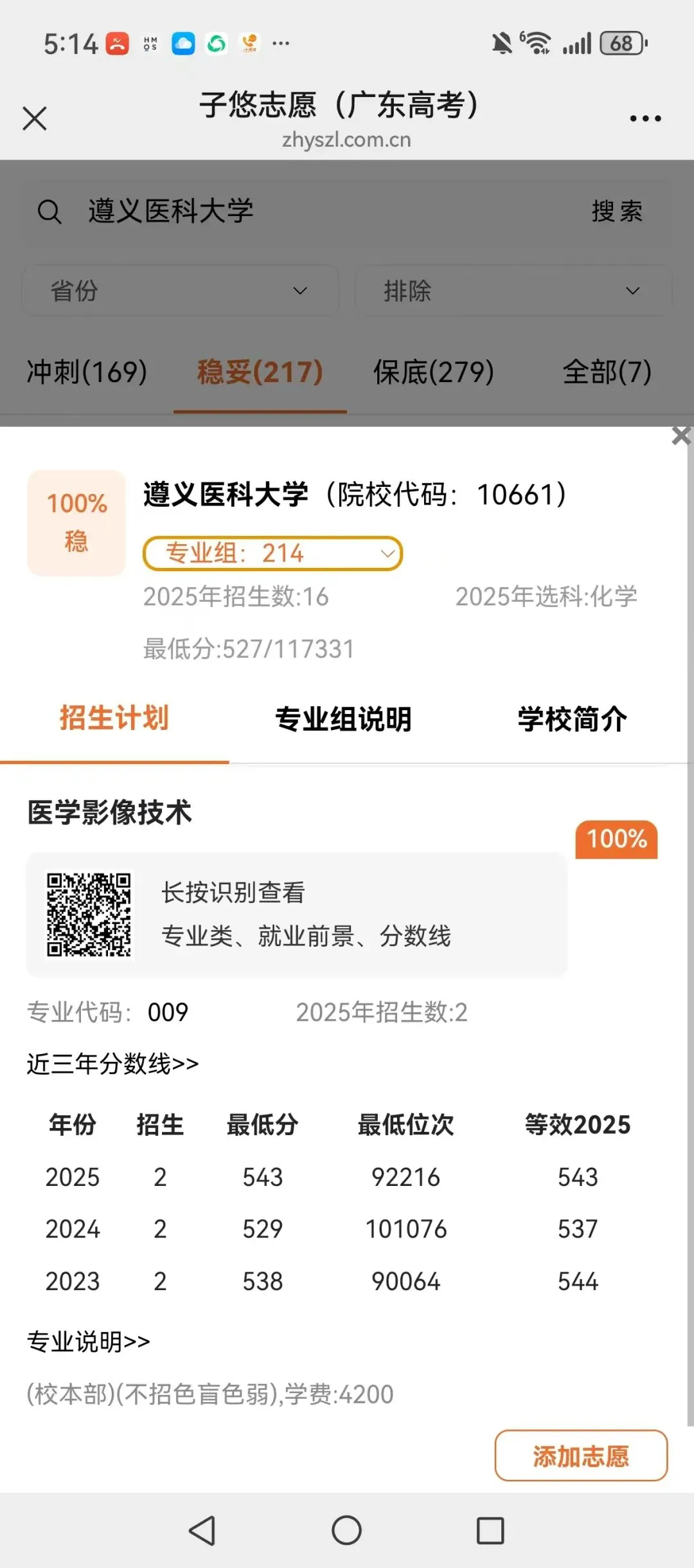 识别左侧二维码,查大学、查专业