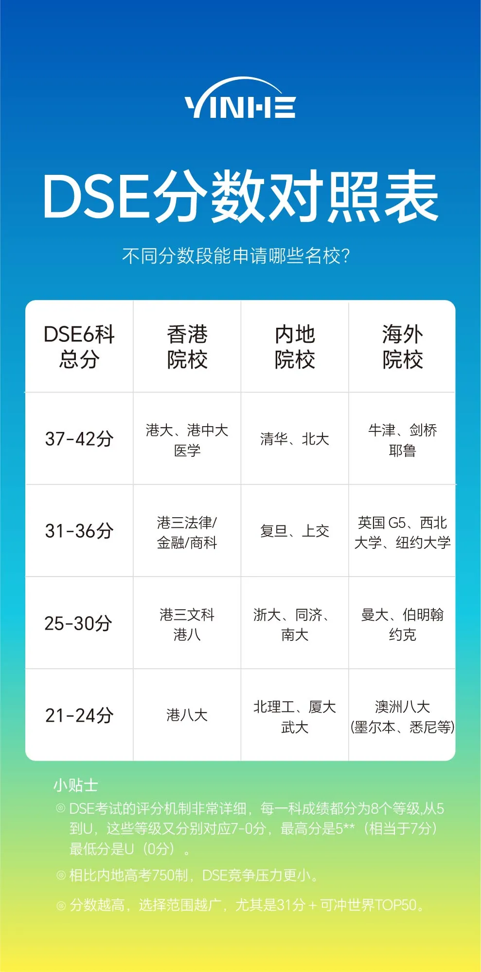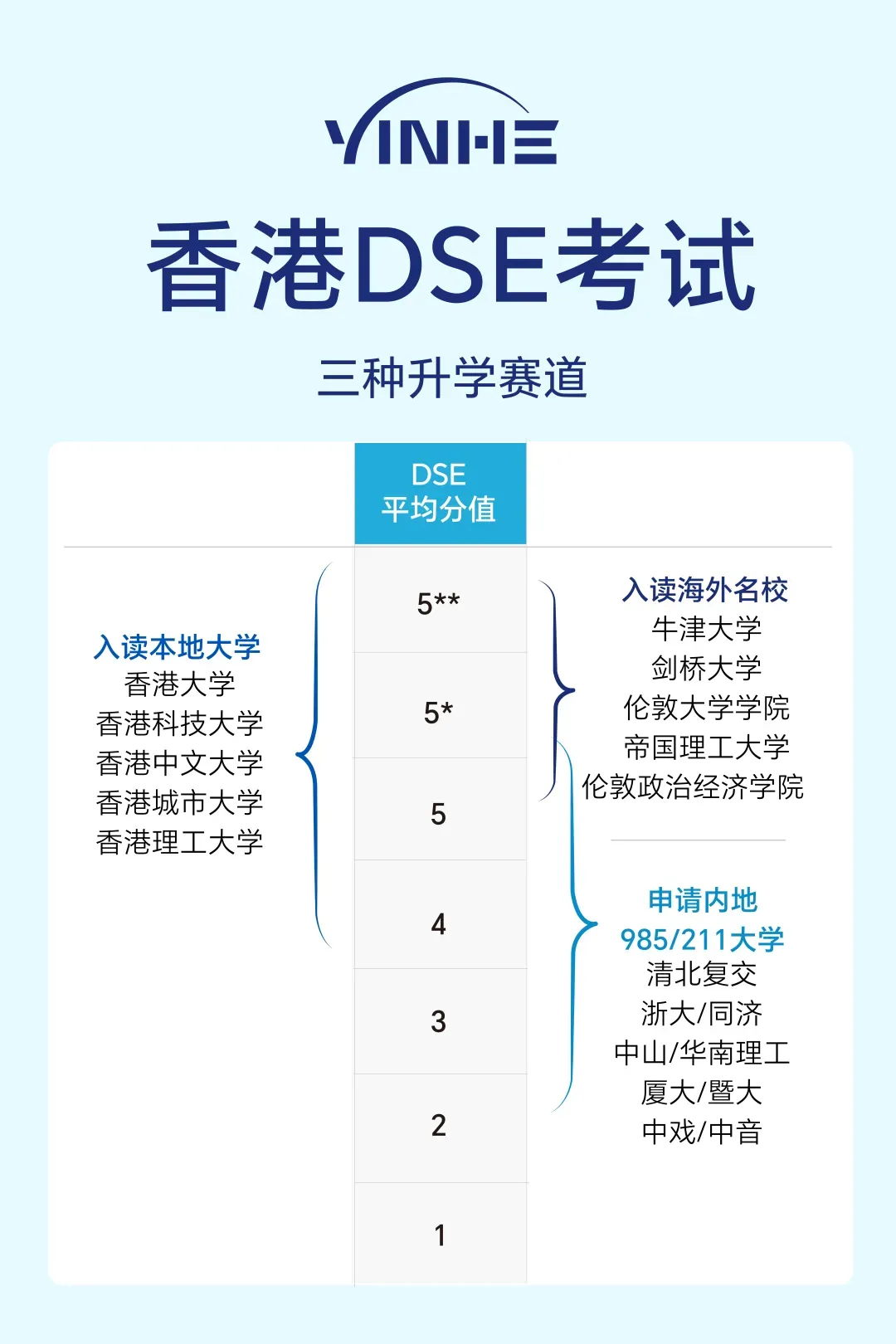 3、香港考评局已官方辟谣DSE成绩“失效”传言,确认包括剑桥、耶鲁在内的众多名校依然认可。DSE是唯一允许用中文作答的国际考试,并可申请内地138所高校。