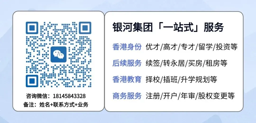 如果您这边需要申请、续签香港身份,或单独拿永居、中小学择校插班、香港公司注册、贡共享办公室租赁等业务,咨询我电话或微信:18145843328