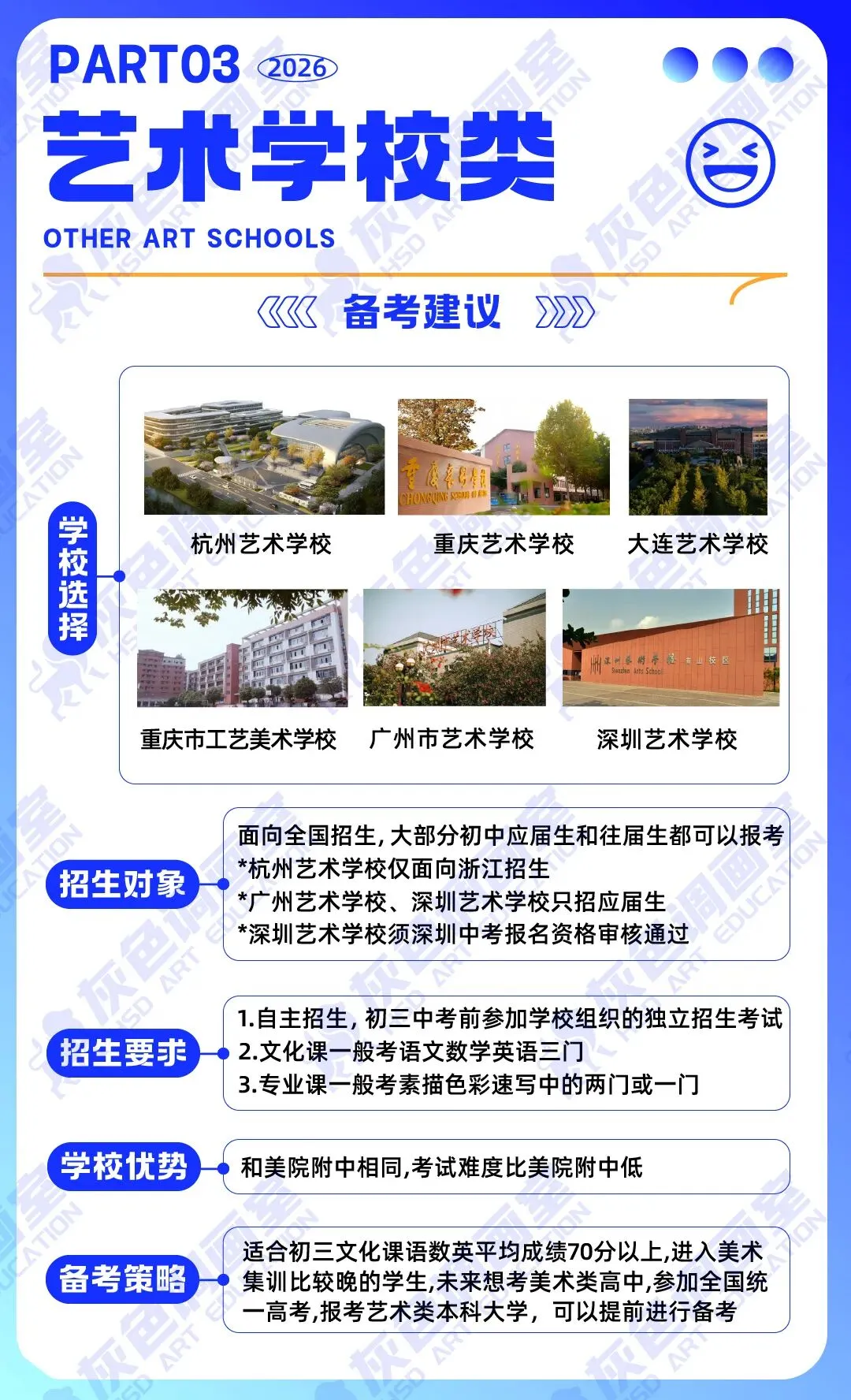 1.杭州艺术学校;2.重庆艺术学校;3.大连艺术学校;