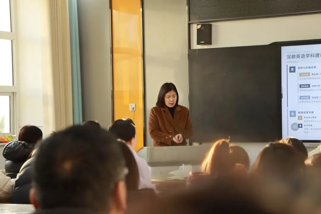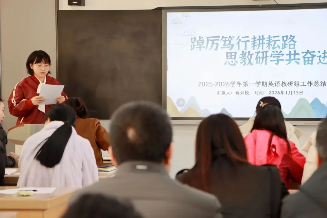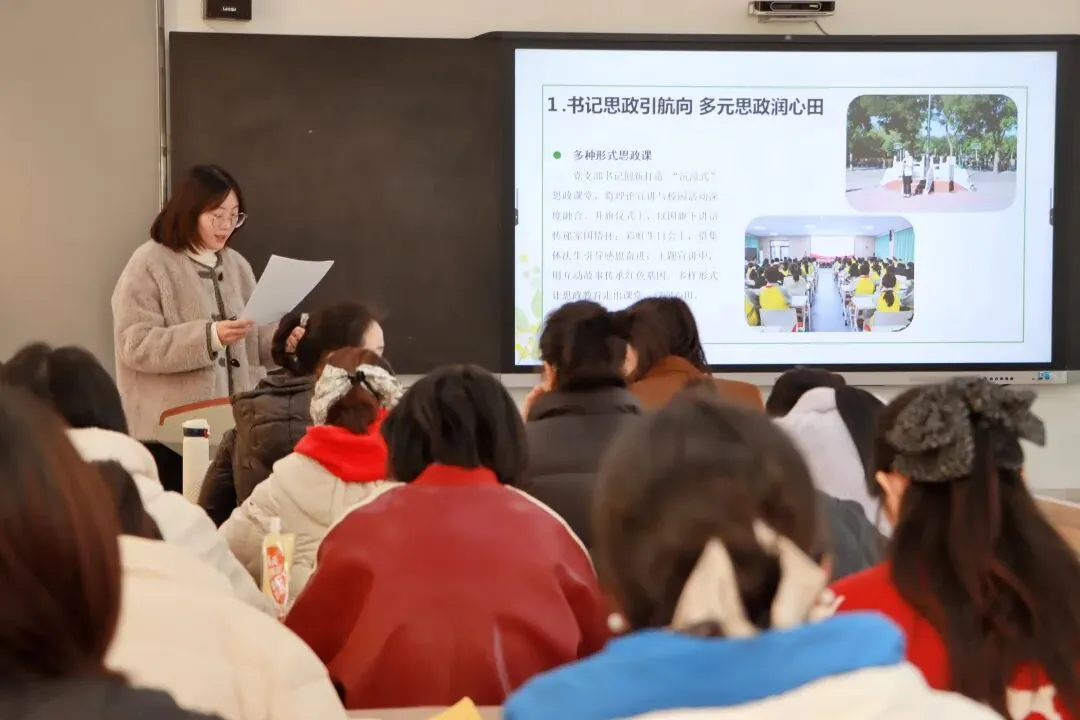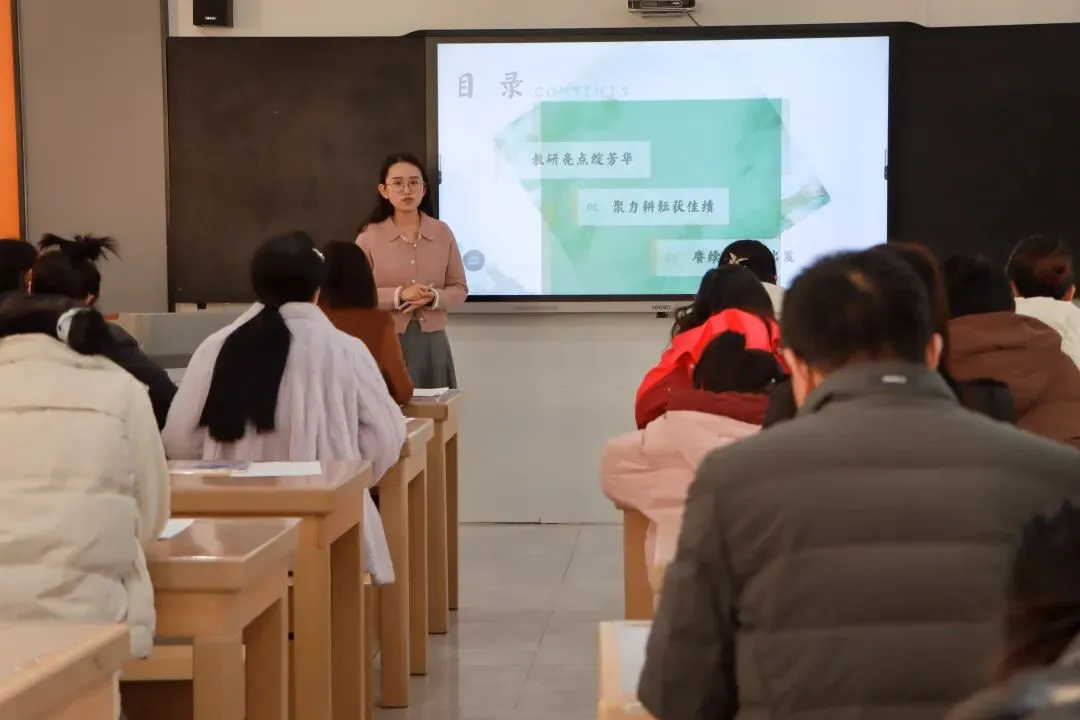 中层领航明方向,教研赋能促提升。在教研组长分享篇章,语文、数学、英语、道德与法治四大教研组组长化身学科“领头人”,结合学科特点与教学实践,分享了以研促教的宝贵经验。语文教研组长吴嘉冰老师介绍了语文组作为学校最大的教研团队,如何通过集体备课、主题研讨、课堂打磨等方式,让语文课堂成为滋养心灵、启迪智慧的重要载体。数学教研组长朱婷老师聚焦“逻辑思维培养与创新能力提升”,分享了数学组在教材解读、习题设计、教学方法创新等方面的探索,展现了精研教学、扎实奋进的教研风貌。英语教研组长蒋如悦老师分享了如何让英语课堂兼具趣味与深度,通过情境教学、作业设计、文化渗透等方式,激发学生的英语学习兴趣。道德与法治教研组长穆秋芬老师则围绕“立德树人”根本任务,分享了将品格塑造、家国情怀培育融入课堂教学的实践案例,彰显了思政课程的育人温度。
