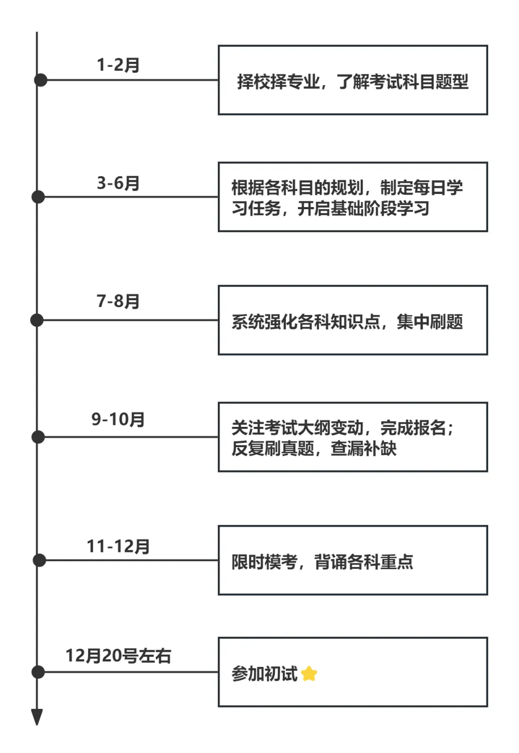 英语:继续积累单词,重点背诵真题中的高频词和熟词僻义;强化阅读训练,每天做1篇真题阅读,总结解题技巧;作文可以积累高分句型和素材,尝试仿写。