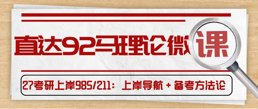 >直达92马理论微课|27考研985/211,你的上岸导航+备考方法论