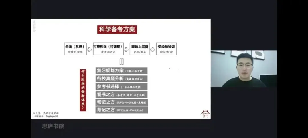咳咳,为了帮助广大哲考生克服这些困境,思庐哲学考研特别为大家打造了一套完整的、科学的备考指南——《零基础哲学考研入门科学备考指南》视频课程。
