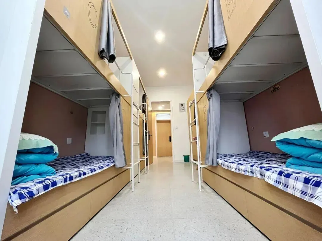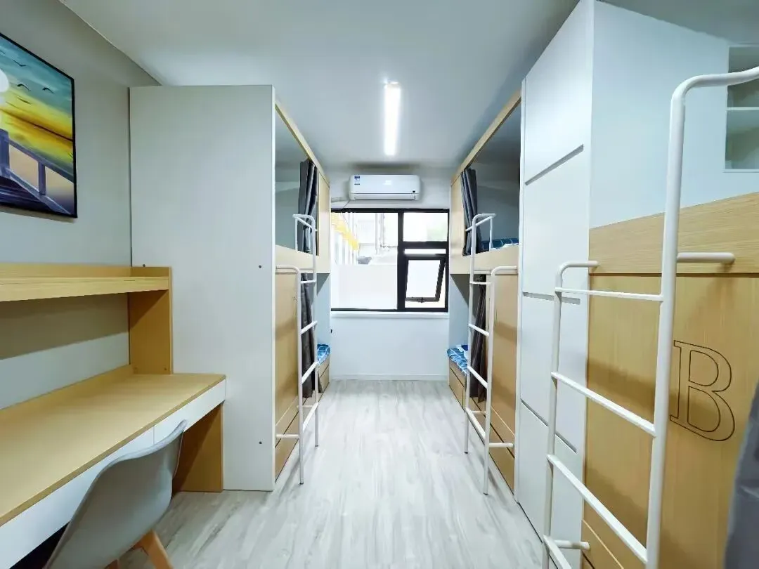 我们的宿舍为考研学子提供了多样化的选择,分为6人间和4人间,上下连体床无声设计,且每张床都配备有遮光床帘,最大程度保障考研人的休息和睡眠,打造相对私密独立的个人空间。每个房间内都配备电源插座、充足的储物空间、空调等,另外公共区域也提供自助洗衣机和24小时直饮热水,确保日常生活的便利性。宿舍区也有专职宿管提供全天候管理,确保住宿环境的安全与秩序,让每位学子都能住得放心,学得安心。
