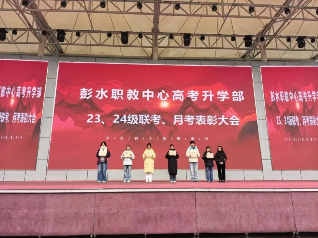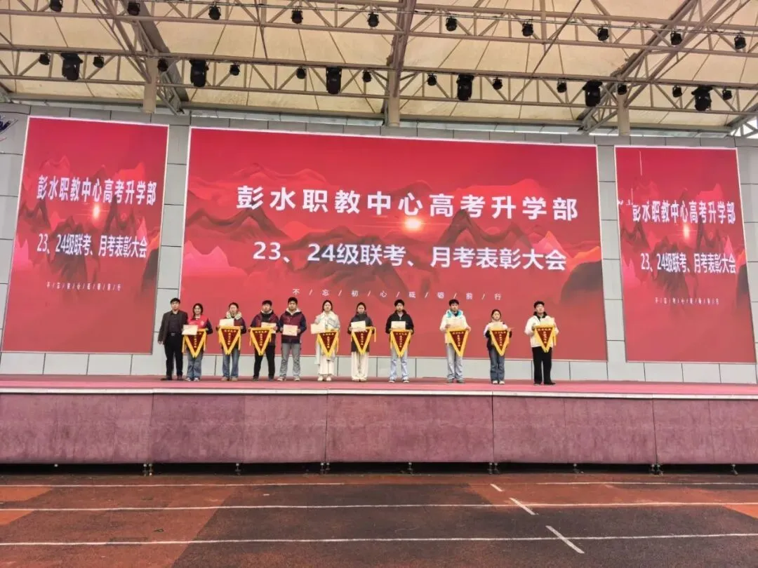 1月,高考升学部隆重举办2023级、2024级联考及月考表彰大会。现场为在本次考试中斩获优异成绩的学子颁发奖状与锦旗,获奖学生依次登台领奖,身姿挺拔、神情昂扬,充分展现了彭水职教学子勤学善思、奋勇争先的精神风貌。此次表彰大会紧扣升学备考核心目标,通过树立身边学习榜样,有效激发了全体学生的学习主动性与竞争意识,进一步营造了“比、学、赶、超”的浓厚学习氛围,为后续备考工作注入强劲动力。