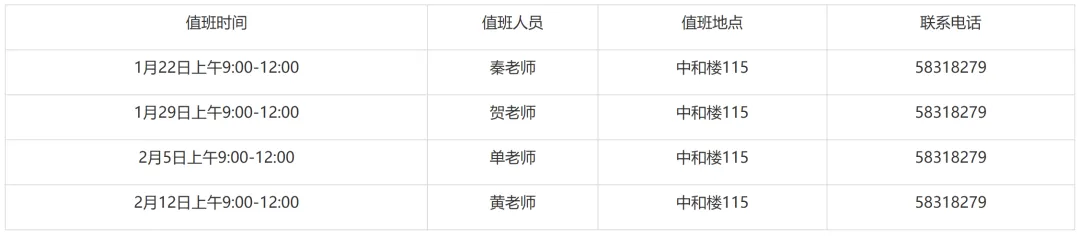 教务处寒假值班安排表