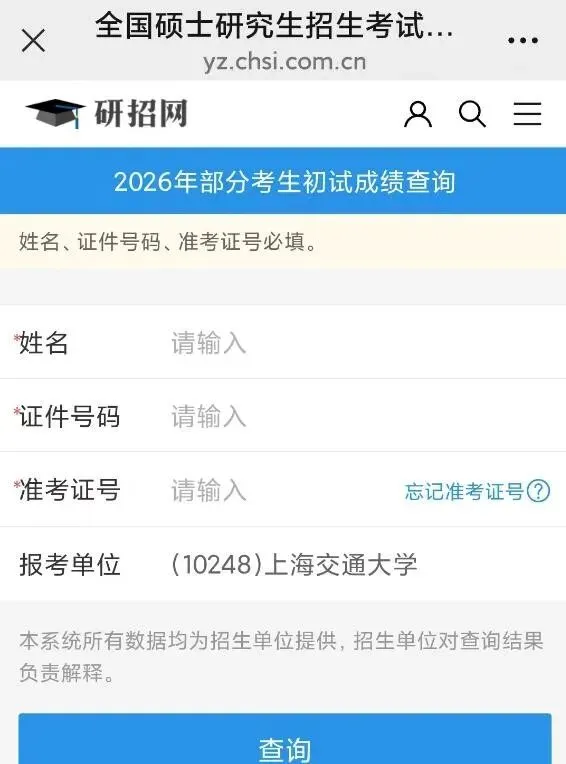 不过得说清楚,不是所有学校都能在研招网查到成绩。只有那些把分数上传到研招网的院校才行。要是到时候查不到,别慌,去你报考的学校研究生院官网看就行,每个学校都有自己的安排。