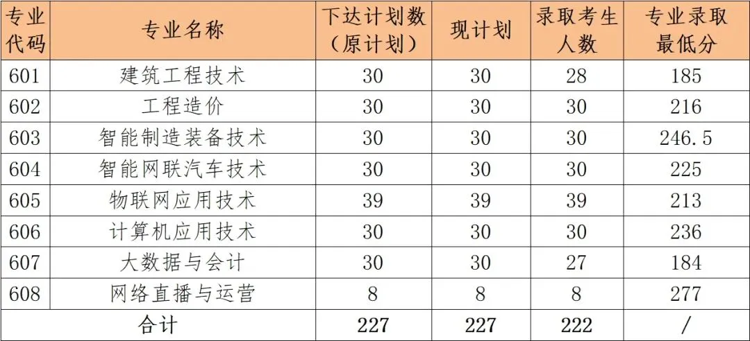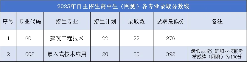 注:录取最低分为学考分数,网测成绩不计入