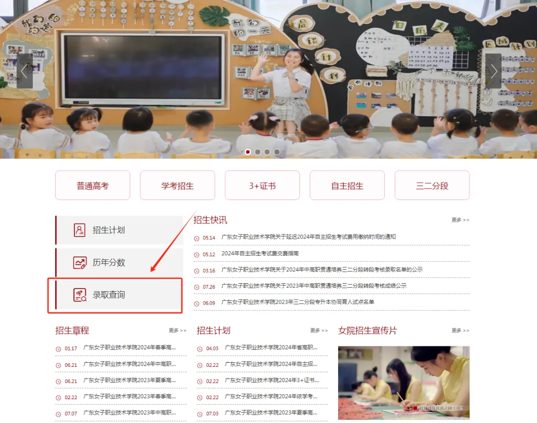 1.浏览器搜索广东女子职业技术学院招生网:http://zsxx.gdfs.edu.cn/