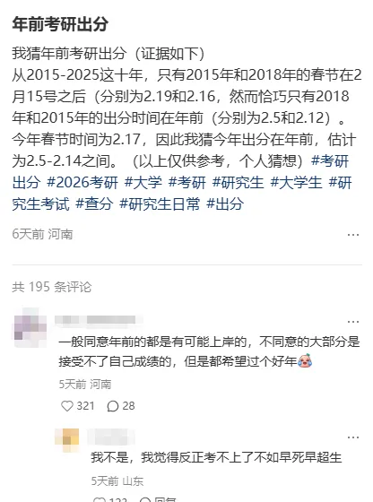牛轧糖团队小伙伴今天刷xhs,发现网上很多人猜测今年会不会在年前出分。猜测的原因也各不相同:因为研招网已经更新了查分页面,因为今年过年时间较晚,因为前些年有年前出分的先例...