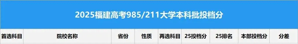 5.数据采用2025年福建高考普通本科批院校专业组投档线。