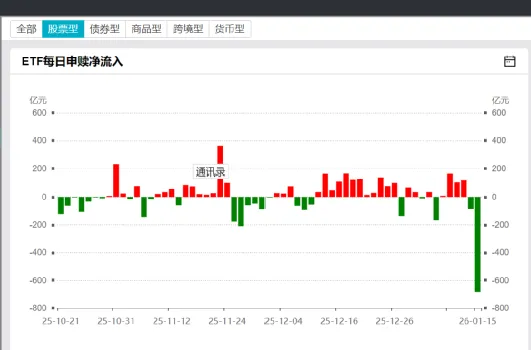 4、宽基ETF大量净流出。这次流出是全方位的。无论是代表蓝筹的沪深300,还是代表科技的科创50,都遭遇了百亿级别的赎回。
