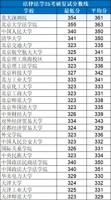 法律(法学)2025年全国考研复试分数线汇总(全日制)