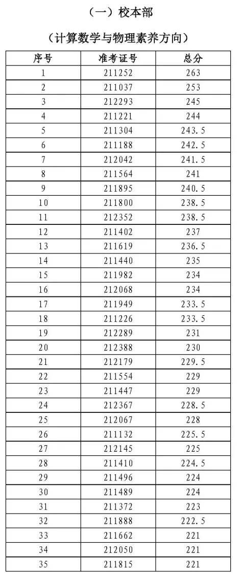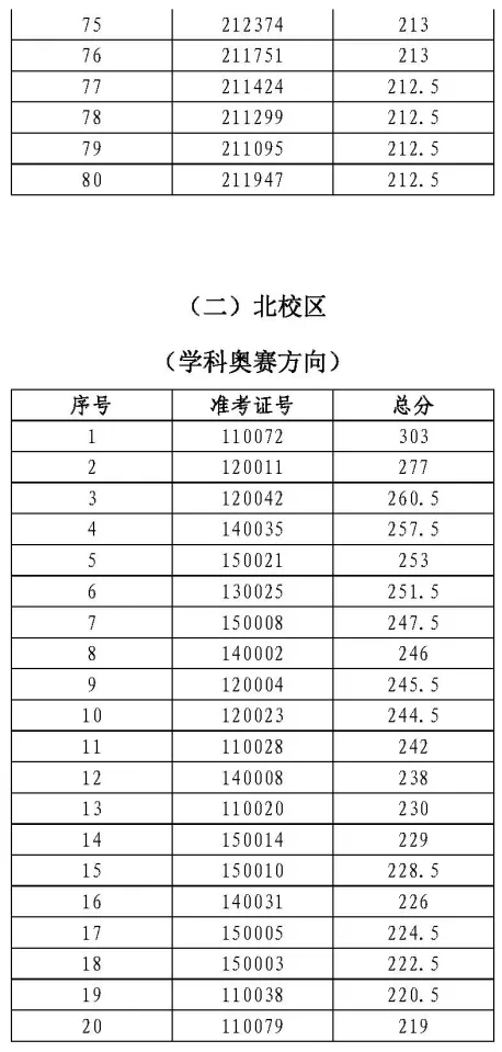 第20名:219分(学科竞赛录取最低分)