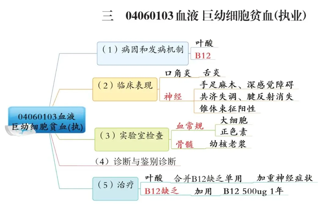 2.临床表现:特有表现→有精神神经系统表现,如有手足麻木、共济失调、有震颤(尤其缺乏维生素B12时症状更典型)。