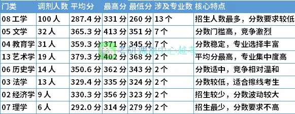不同门类的调剂难度和分数要求差异明显,我们整理了 8 个主要门类的核心数据,帮你精准定位适合自己的方向: