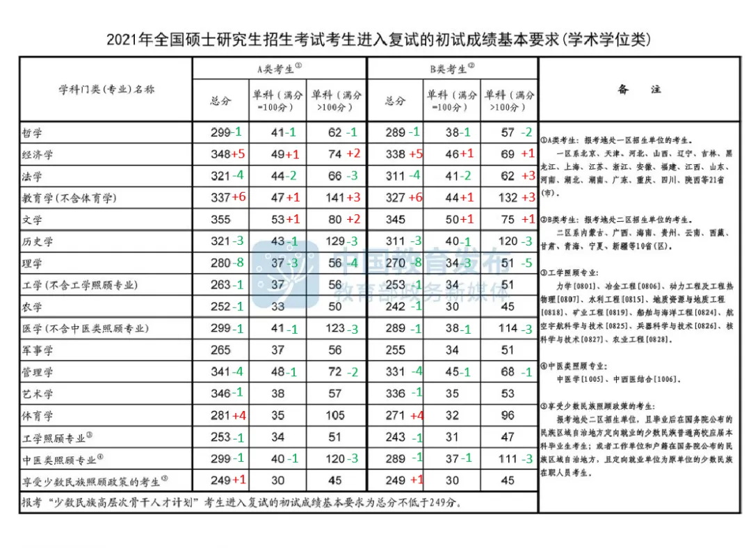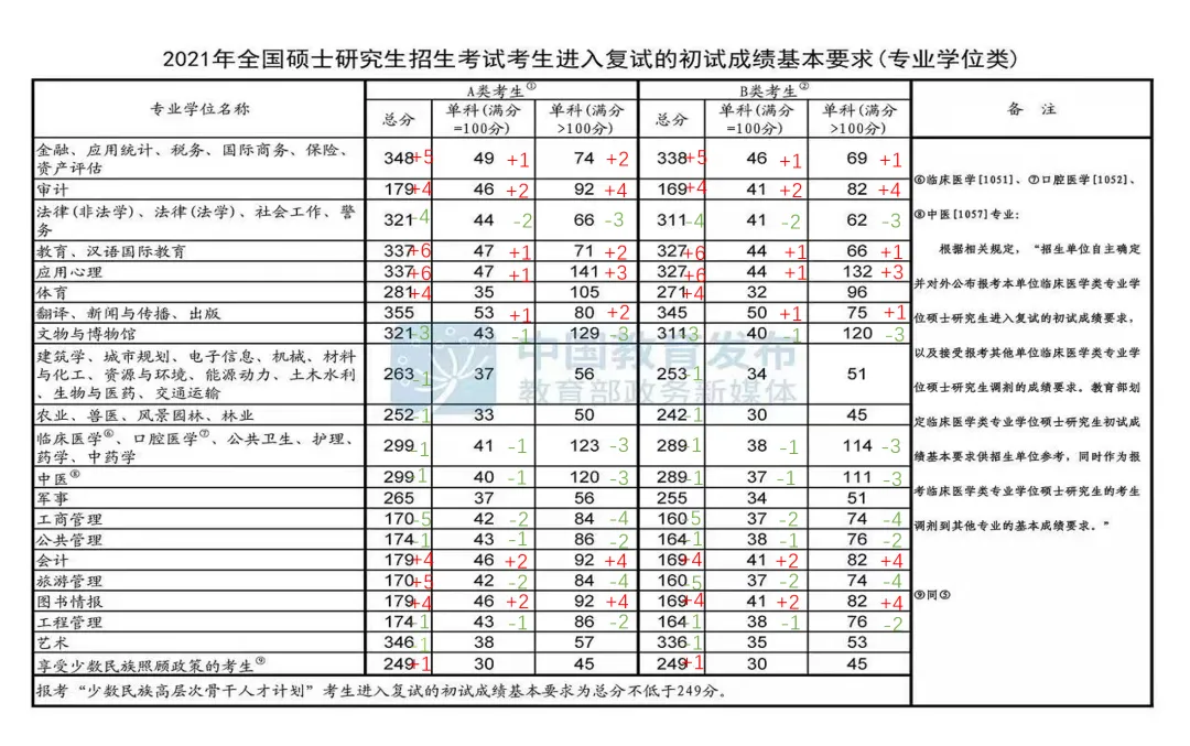 +号表示与2020年国家线对比变化