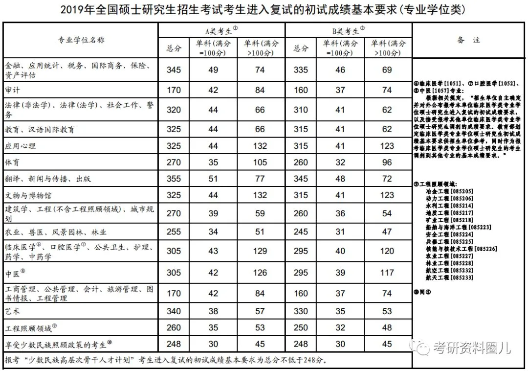 2019年 专业学位类