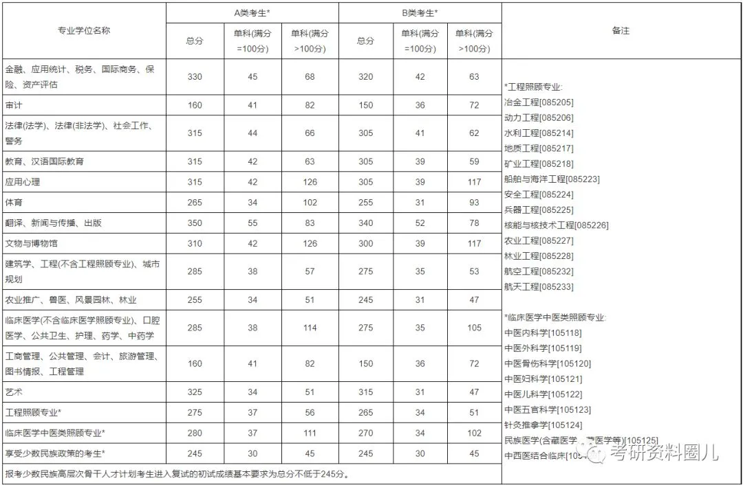 2020年 专业学位类
