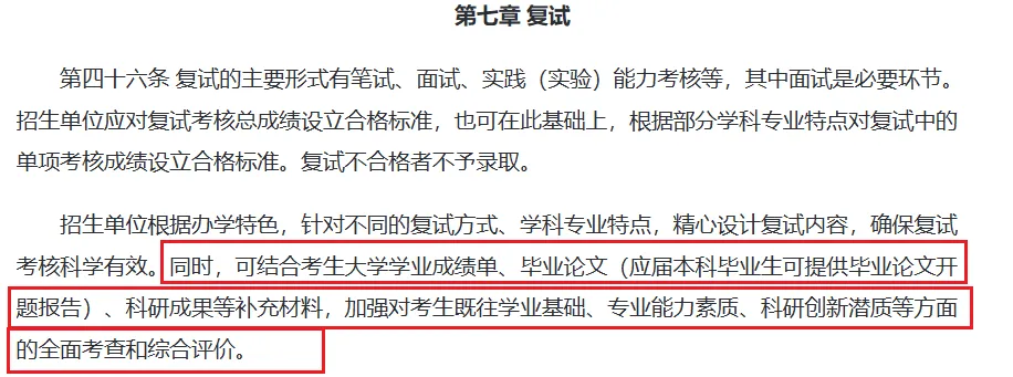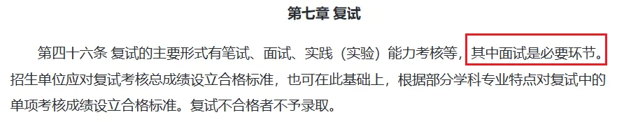 2026年研招规定强调复试的主要形式有笔试、面试、实践(实验)能力考核等,其中面试是必要环节。这意味着笔试或将陆续取消,面试+实操或将成为复试主流形式。