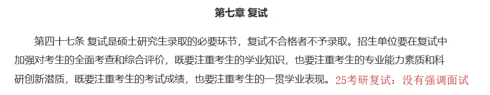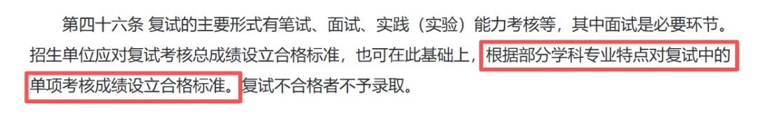 2026新增“招生单位应对复试考核总成绩设立合格标准,也可在此基础上,根据部分学科专业特点对复试中的单项考核成绩设立合格标准。”也就是说,复试也可能像初试一样,对单科有“过线”要求!