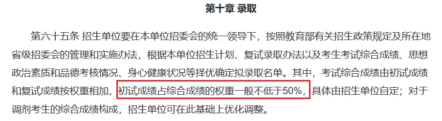 2026年研招规定,考试综合成绩由初试成绩和复试成绩按权重相加,初试成绩占综合成绩的权重一般不低于50%。