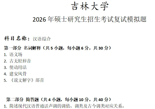 吉林大学汉语综合考研复试真题模拟含答案