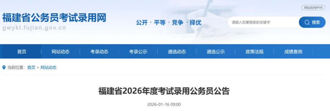 本次招考的报名网站为福建省公务员考试录用网(以下简称“福建考录网”),
