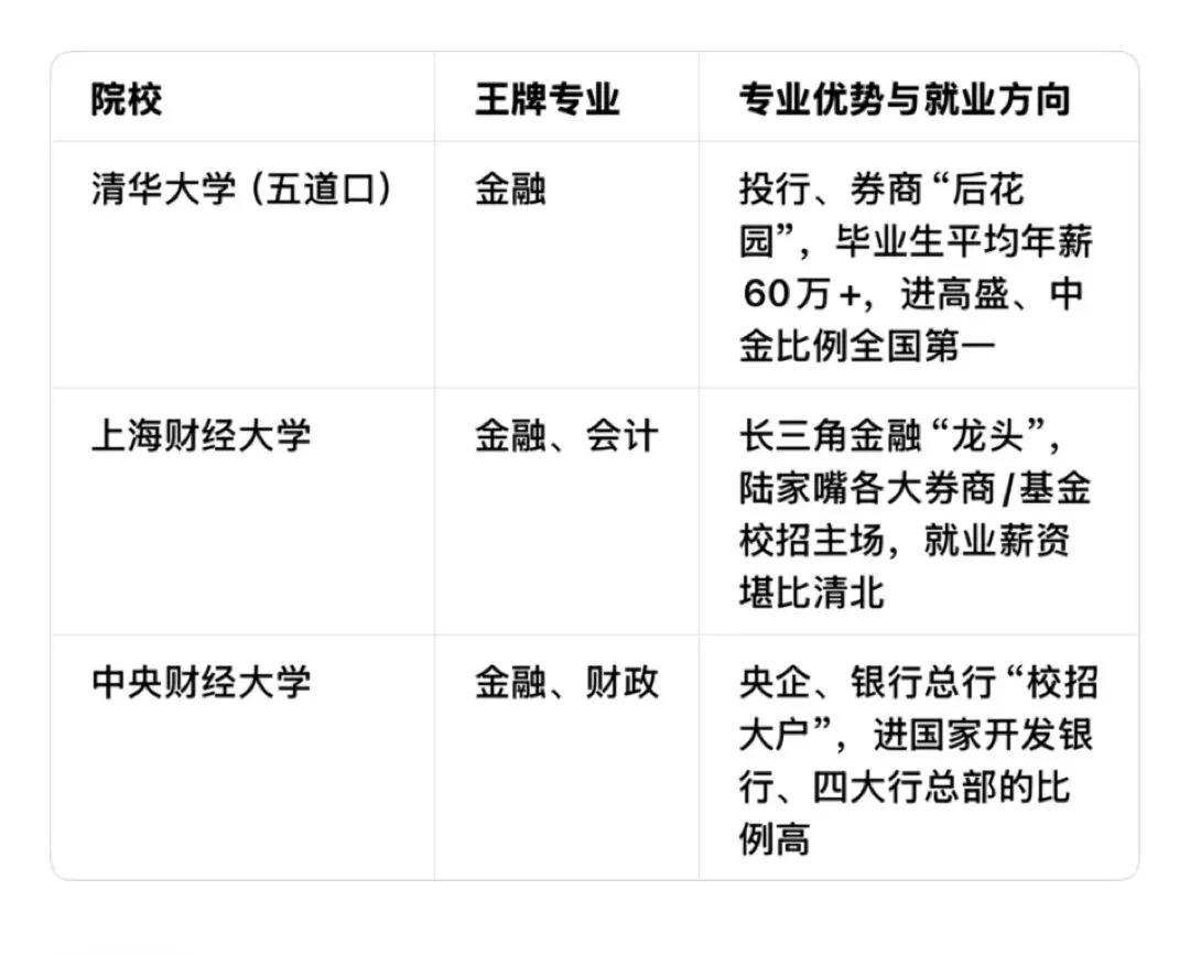 • 西南财经大学(金融):西南地区银行、券商“垄断级”认可度,成都、重庆金融岗首选;