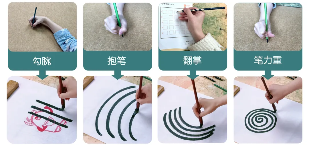 孩子只要跟着兴致勃勃地“画画”,自然而然就掌握了书法的精髓——蚕头、雁尾。