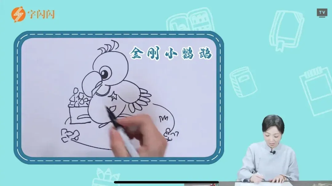 于是“唰唰唰”⼏笔,就画出⼀只⾦刚鹦鹉,一下勾起了娃的好奇心。