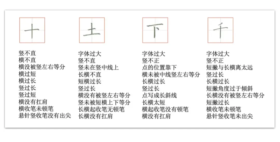 涵盖了章法、结构、笔画等各个维度,几乎把孩子日常书写会犯的错误全部囊括了进来。