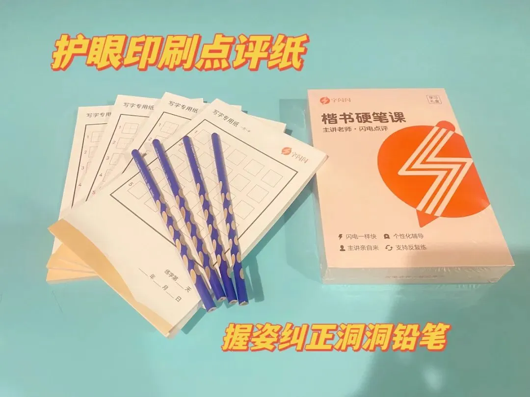 ▲配套硬笔礼盒⼀份,含足够练一年字的护眼纸、还有4支洞洞铅笔。高年级孩子直接用钢笔和中性笔练习就行。