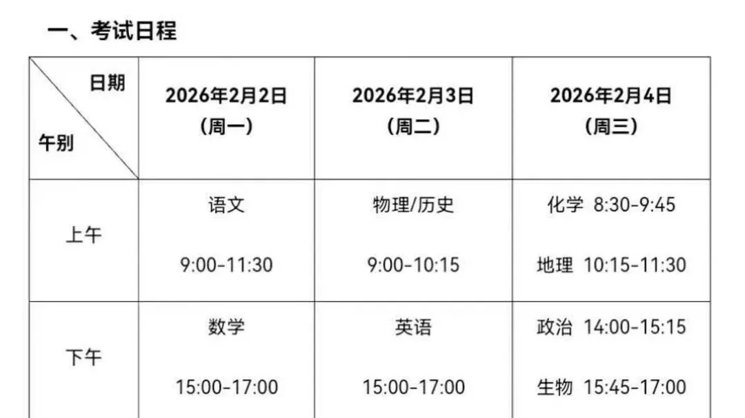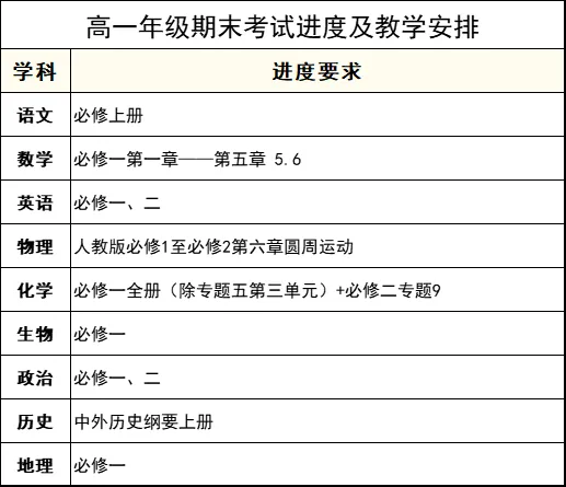 高中期末详细安排+考试范围定了!