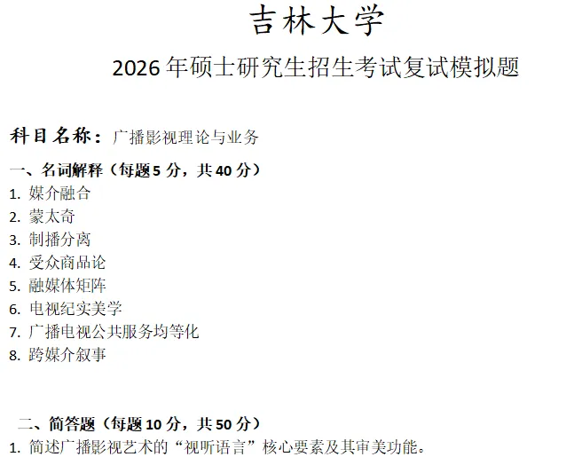 吉林大学广播影视理论与业务考研复试真题模拟含答案