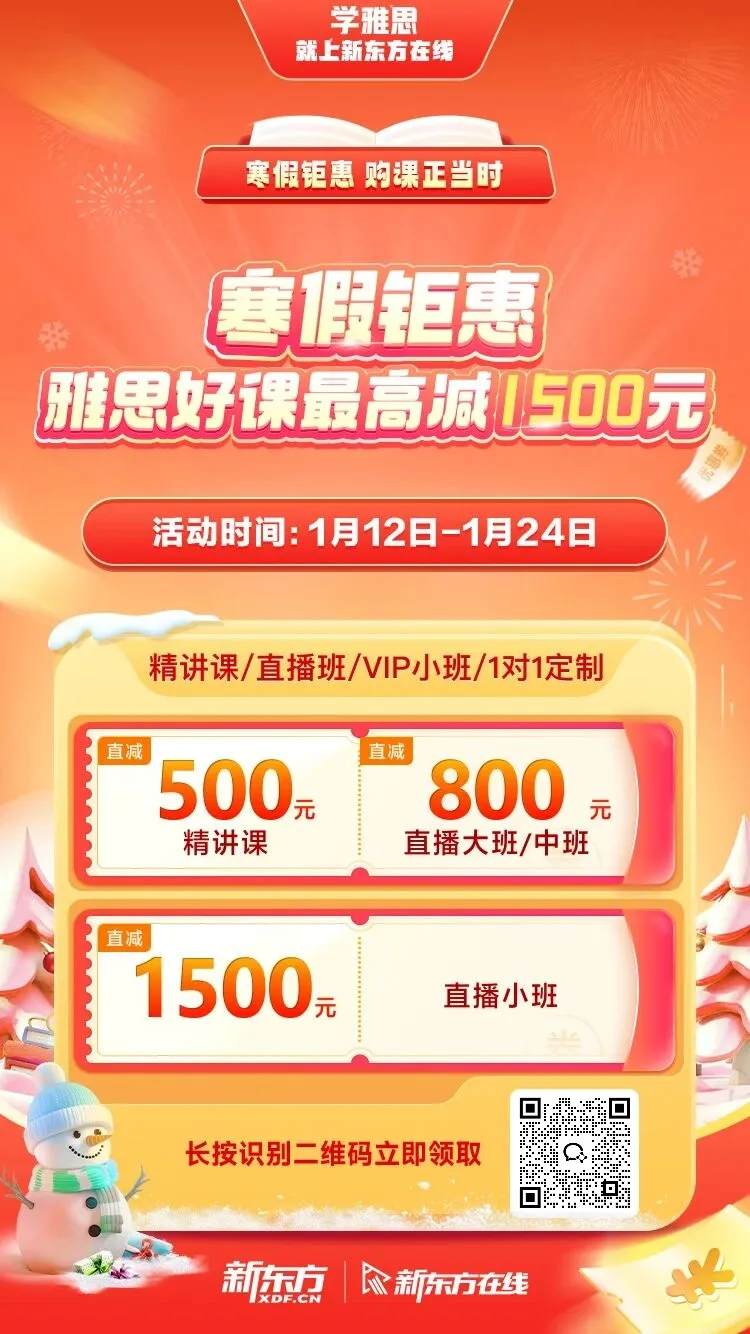 总的来说,考雅思不能依靠“玄学”,踏踏实实地备考才是硬道理。关于雅思备考你还有什么疑问,或是想找老师学习,可以看下我们的雅思好课~寒假大促期间,雅思好课满额可享受满减优惠,快来添加小雅学姐咨询吧👇🏻