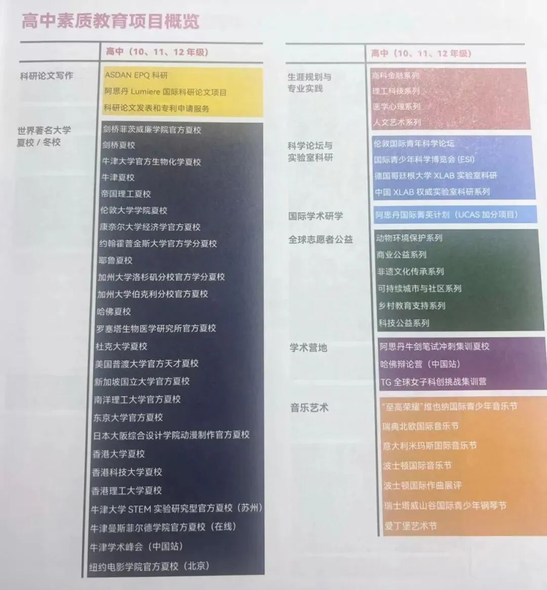 大学招生官除了考察申请者的成绩平均绩点、语言成绩,往往还会结合美国高考SAT、大学预科课程(Advanced Placement,简称AP)的成绩。高中生需要参加的用来评估证明学术能力的考试中,AP考试成绩位居首位。比如,完成AP研讨课与AP研究课且总分达到3分及以上的学生(总分为5分,3分-合格,4分-理想,5分-优秀),将获得AP顶石文凭。这个文凭获得多数高等教育机构认可,可以显著提升学生进入理想院校的录取几率。AP考试并非决定学生学术前途的唯一途径,但它不像SAT一样,一年有多次考试机会,AP每年只有一次考试机会,如果错过就要再等一年。并且,如果学生就读的国际学校不是AP考场,有可能需要出国考试,虽然近年出现了社会考生报名的途径,也不是所有科目都可以报考。因此,升学顾问会提醒并协助组织学生完成报名。家长们如果不了解AP考试,不妨直接和学生升学顾问咨询,甚至陪孩子一起了解AP考试,关注AP课程的选择。升学指导真正的价值,往往体现在“提醒你不要错过那个时间点”。四、竞赛和夏校,不是越多越好