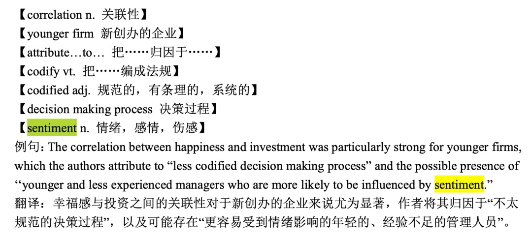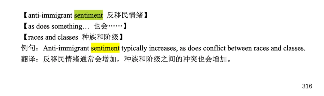 考研英语高频词汇sentiment,选自《25天突破考研英语长难句》随书二维码附赠的电子版《考研英语真题分类话题词汇和句型》P91和316,贾若寒编著,同济大学出版社出版。大学生和高中生都可以参考本书提升词汇量和句型。