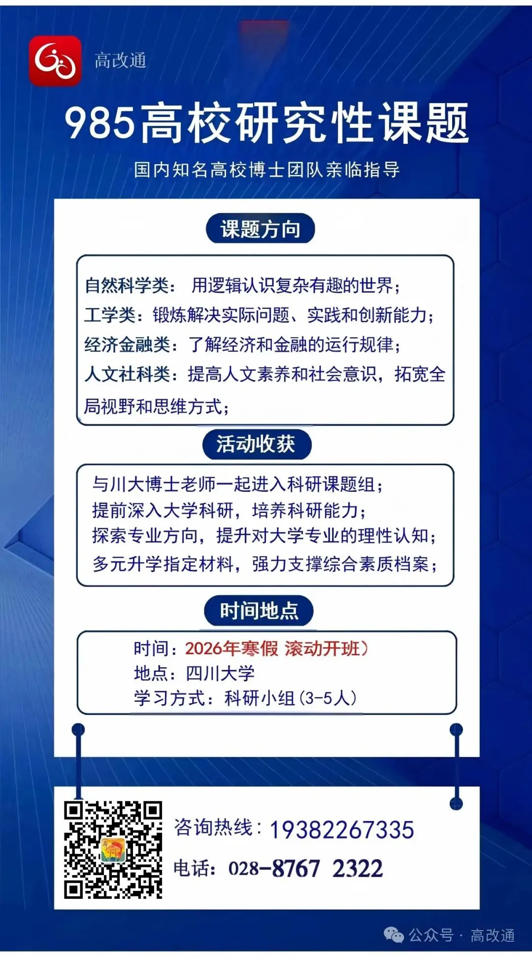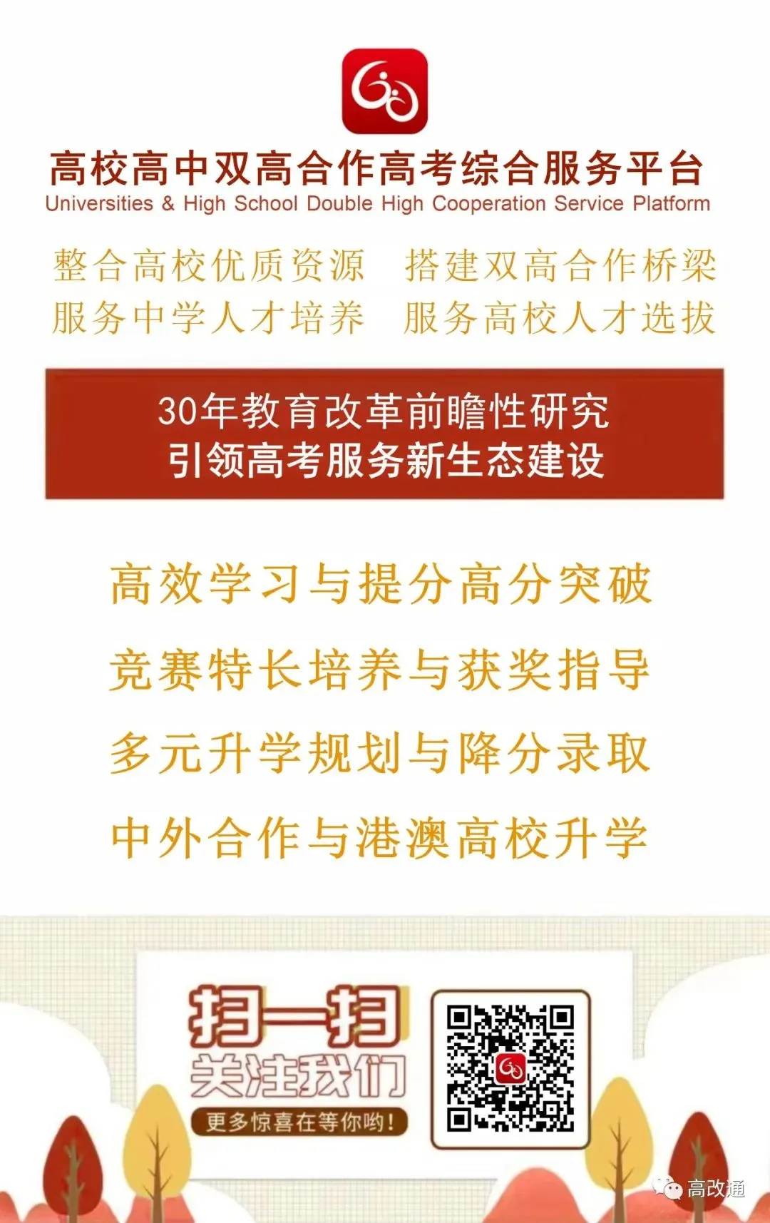 高改通智慧教育,致力于中学生新高考选科、生涯测评、升学规划、背景提升、高校研学、赛事指导、志愿填报、大学生生涯规划等服务,是四川省优秀的教育改革服务平台,立志成为资深、专业、权威的升学规划机构。