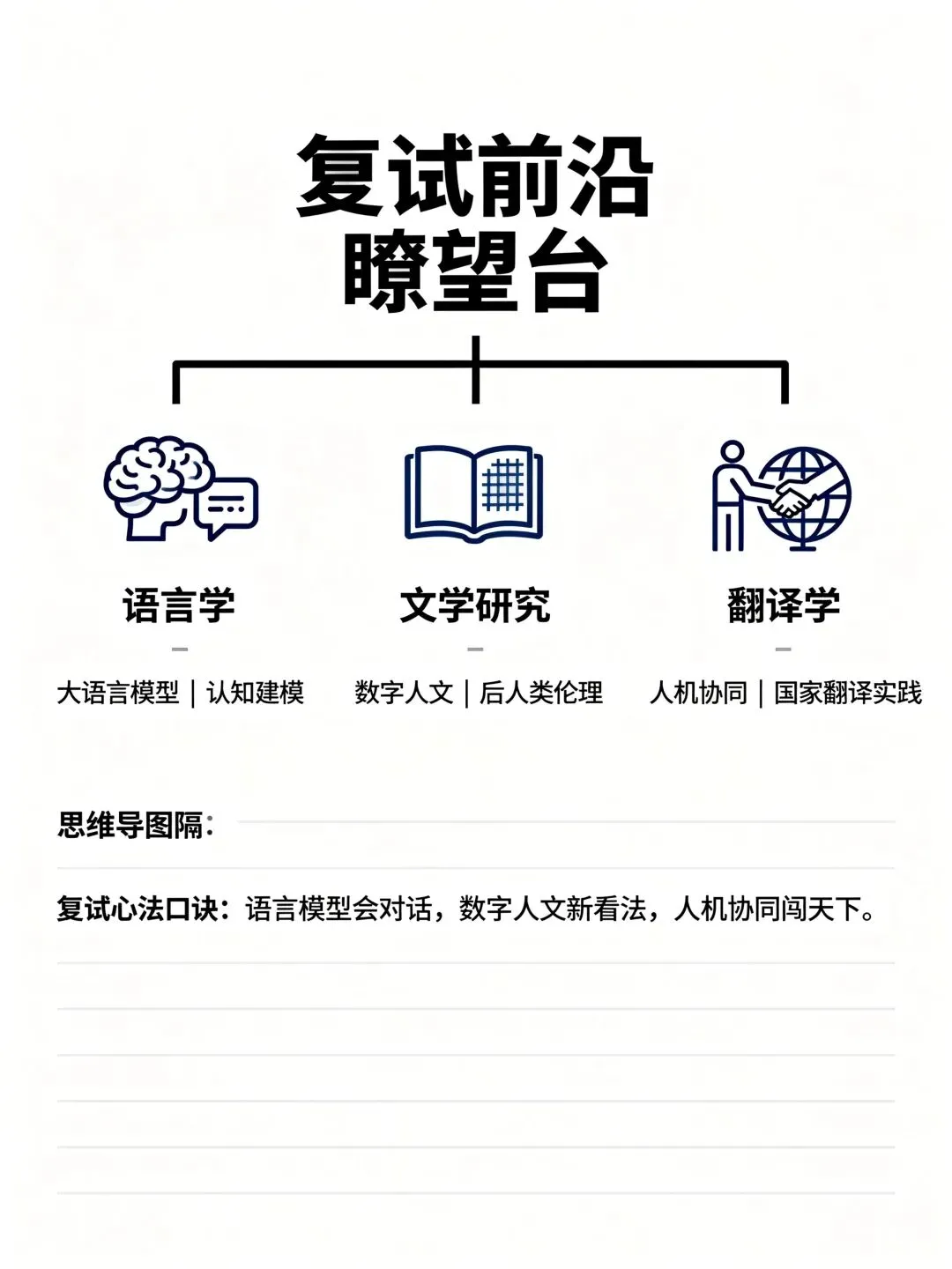 当对结构系统的沉思或对文本肌理的细读仍是重要的学术训练时,以大语言模型为代表的人工智能技术,正引发一场深刻的方法论反思。在许多学者看来,它超越了一般的技术工具范畴,更像一位介入性的“对话者”,持续与语言学、文学、翻译学等学科进行互动,促使学界重新审视一些经典理论的前提与边界。理解这场对话的基调,有助于在复试中建立更具时代感的学术认知。