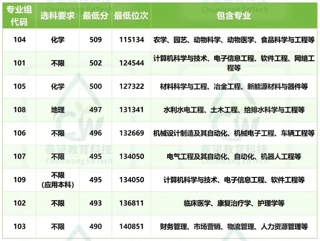 稳妥专业:高于目标专业最低分5-10分(如计算机科学与技术需502+5=507分)