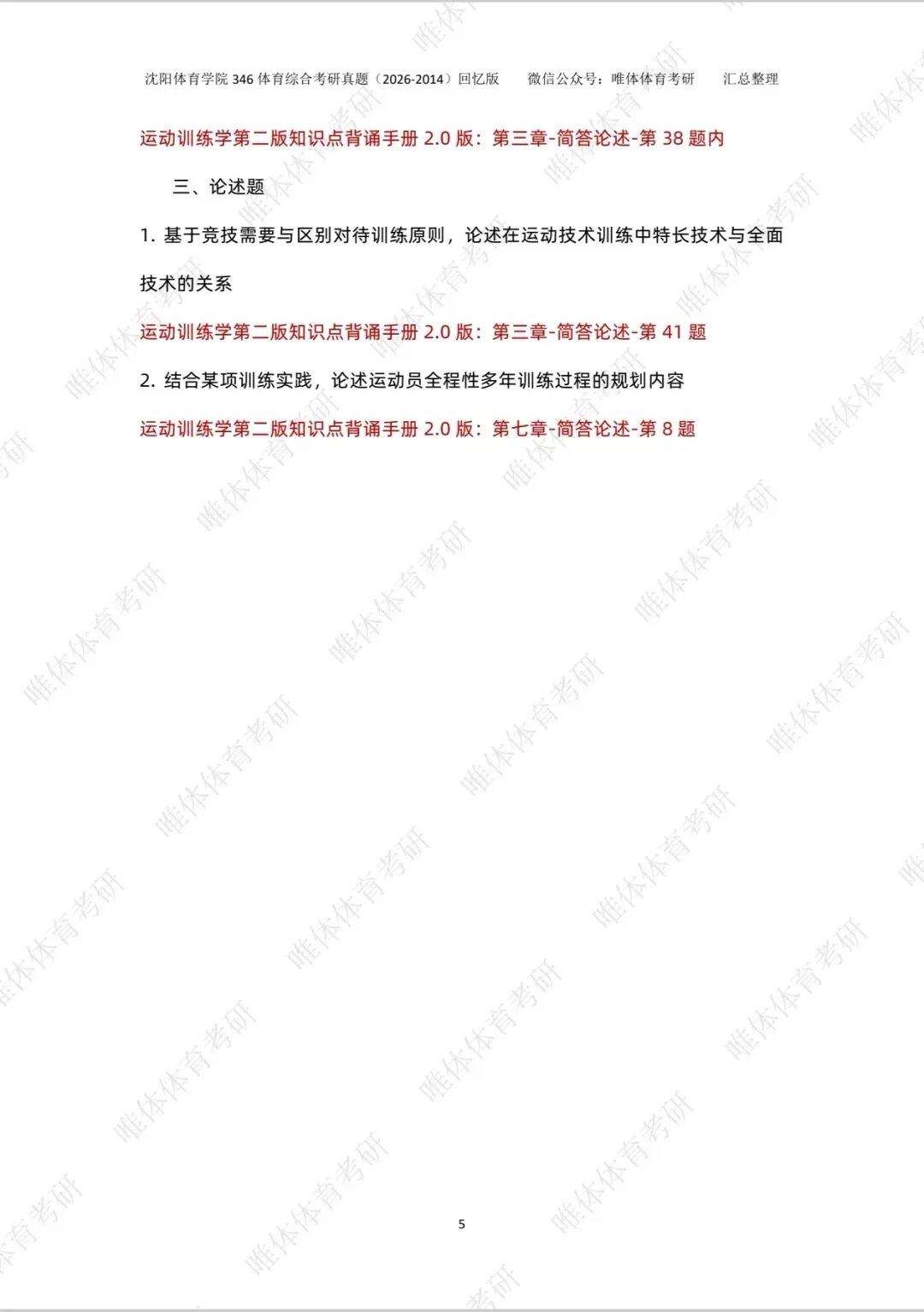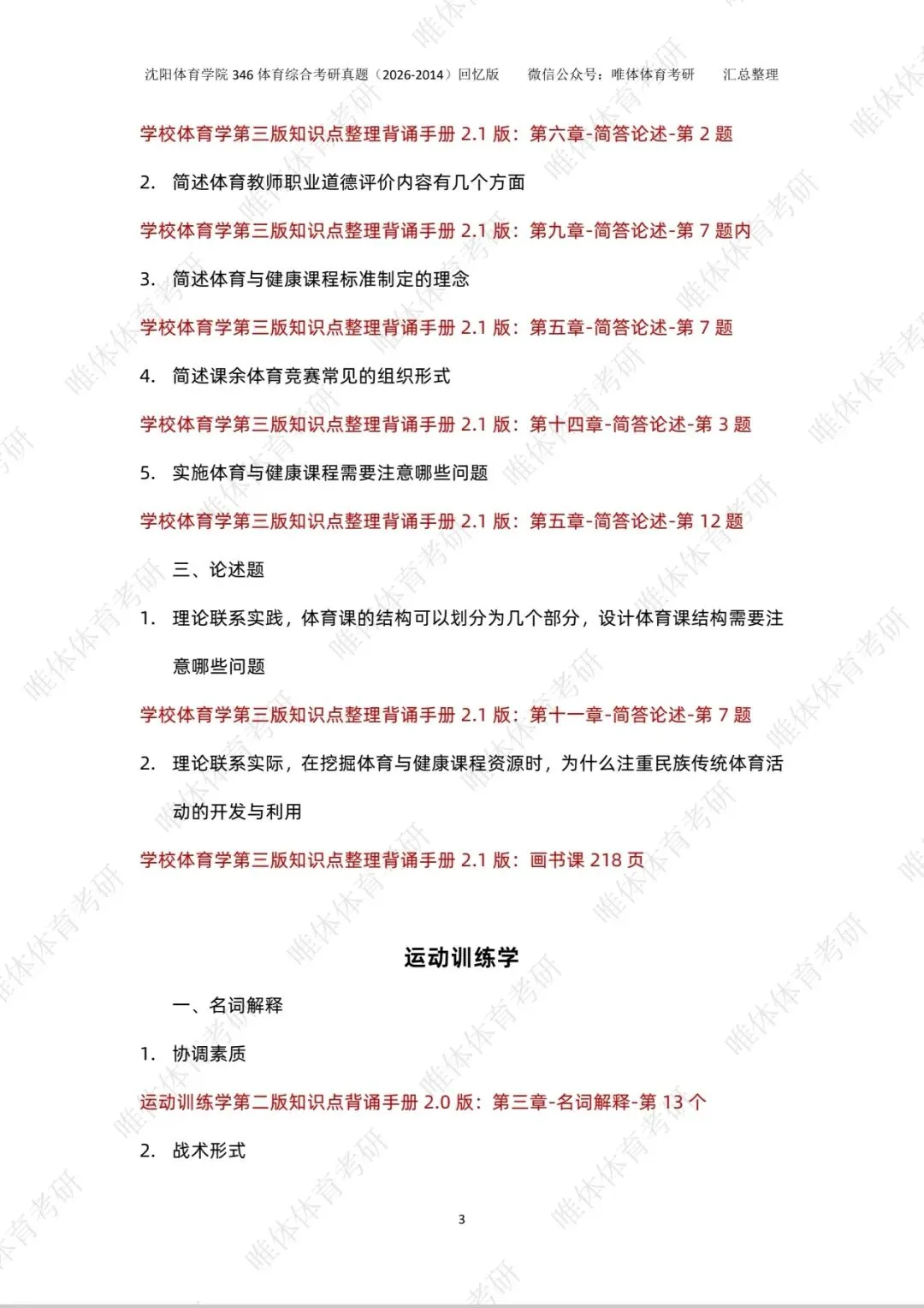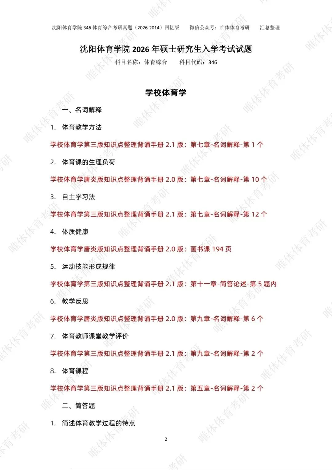 >【体育考研】26考研沈阳体育学院346体育综合考研真题!