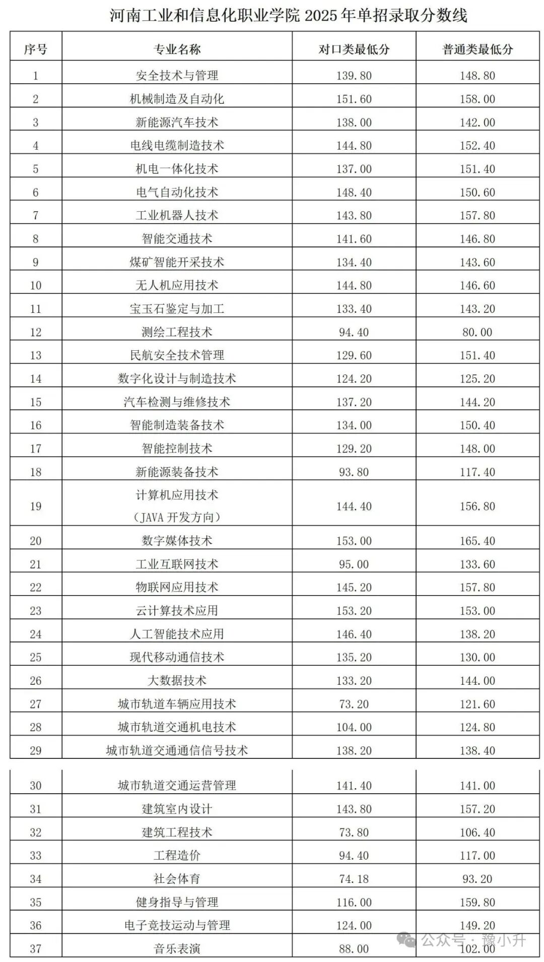 河南工业和信息化职业学院学院2025年单招录取分数线