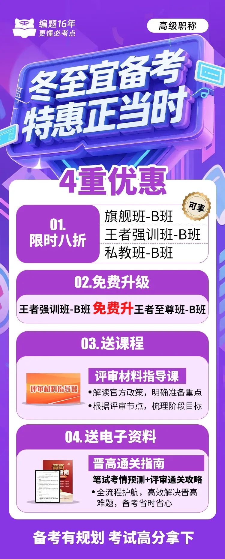 课程是在对近年来全国各省、市、区晋高评审政策和流程进行深入研究和跟踪了解的基础上开设的,因此具有广泛的适用性,对于省卫高评审、基卫高评审或是单位自主评审均具有极高的指导价值