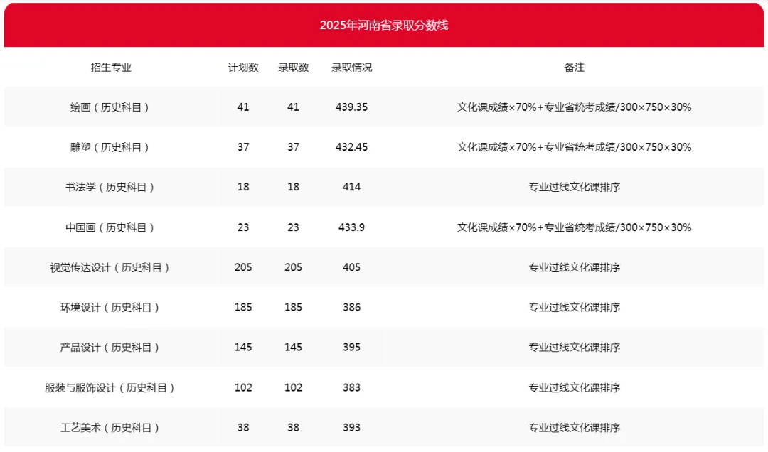 >郑州美术学院2025年在河南省艺术类本科录取分数线