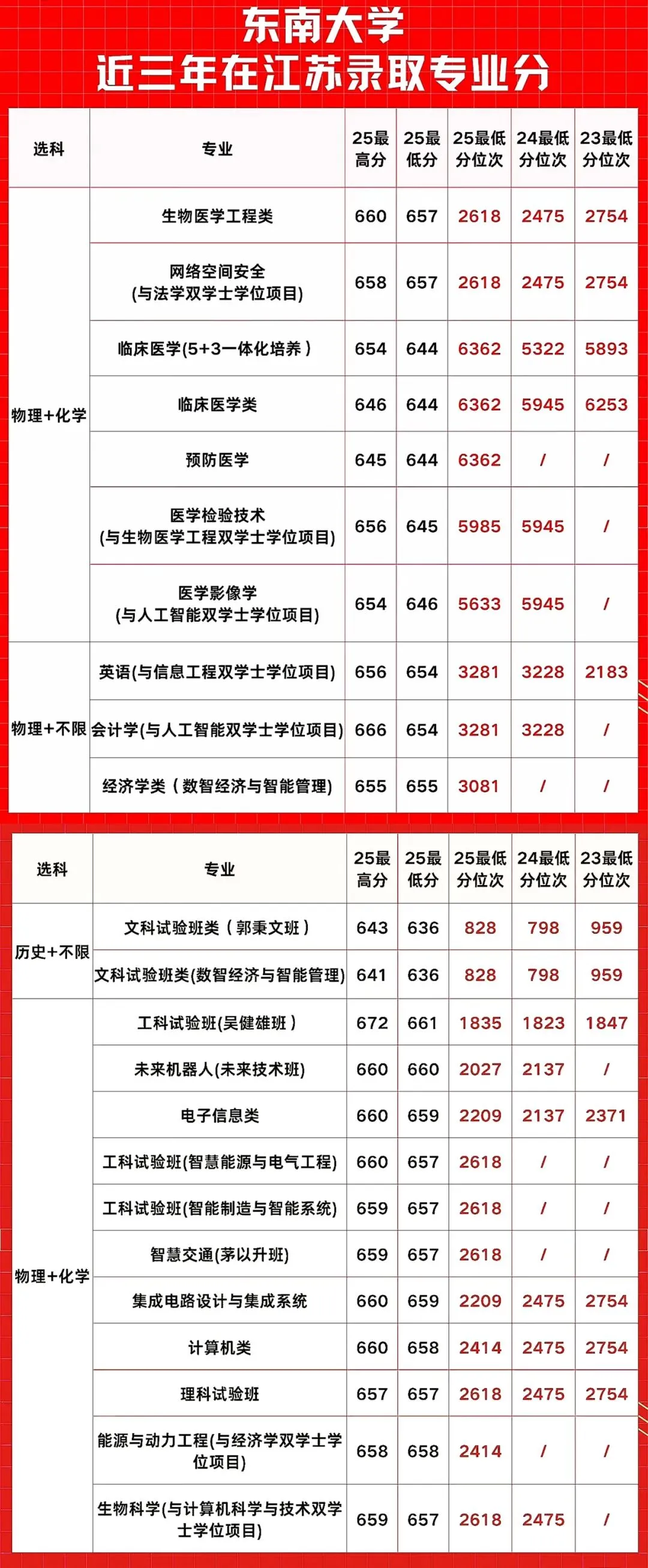1. 工科试验班(吴健雄班):江苏672分,浙江672分,辽宁673分;作为东大工科最高平台,聚焦信息工程等顶尖理工专业,是高分考生的首选,竞争极为激烈。